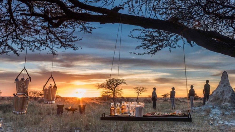 Romantik für Genießer: Sundowner mit Blick in die Wildnis.