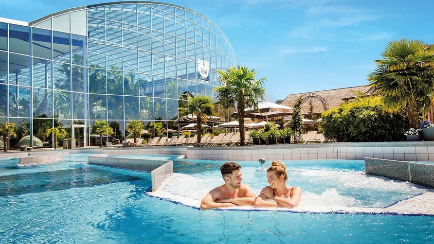 Die Therme Erding präsentiert sich nach der Modernisierung im Dezember 2025 noch eindrucksvoller: Ein riesiges Wellenbad mit bis zu zwei Meter hohen Wellen, 28 spektakuläre Rutschen sowie 40 Pools und Wasserbecken schaffen ein Südseeparadies mit 300 echten Palmen. Begrünte Green Walls sorgen für eine beruhigende Atmosphäre, während die neue 360° Re-Poolbar mit Panoramablick die Therme mit der VitalOase (textil, ab 16 Jahren) verbindet.